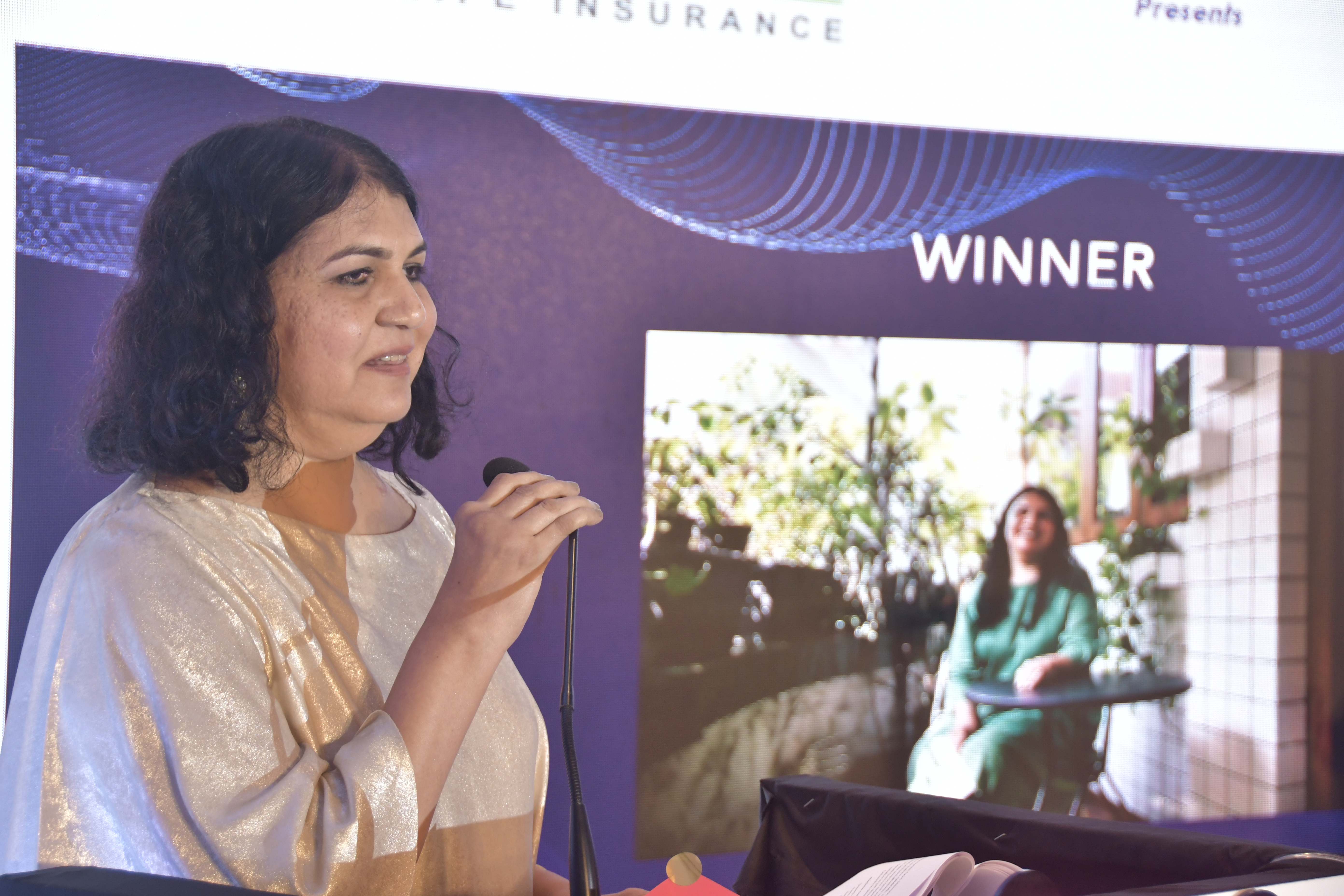 Winner Bharati Jaisingh making a speech