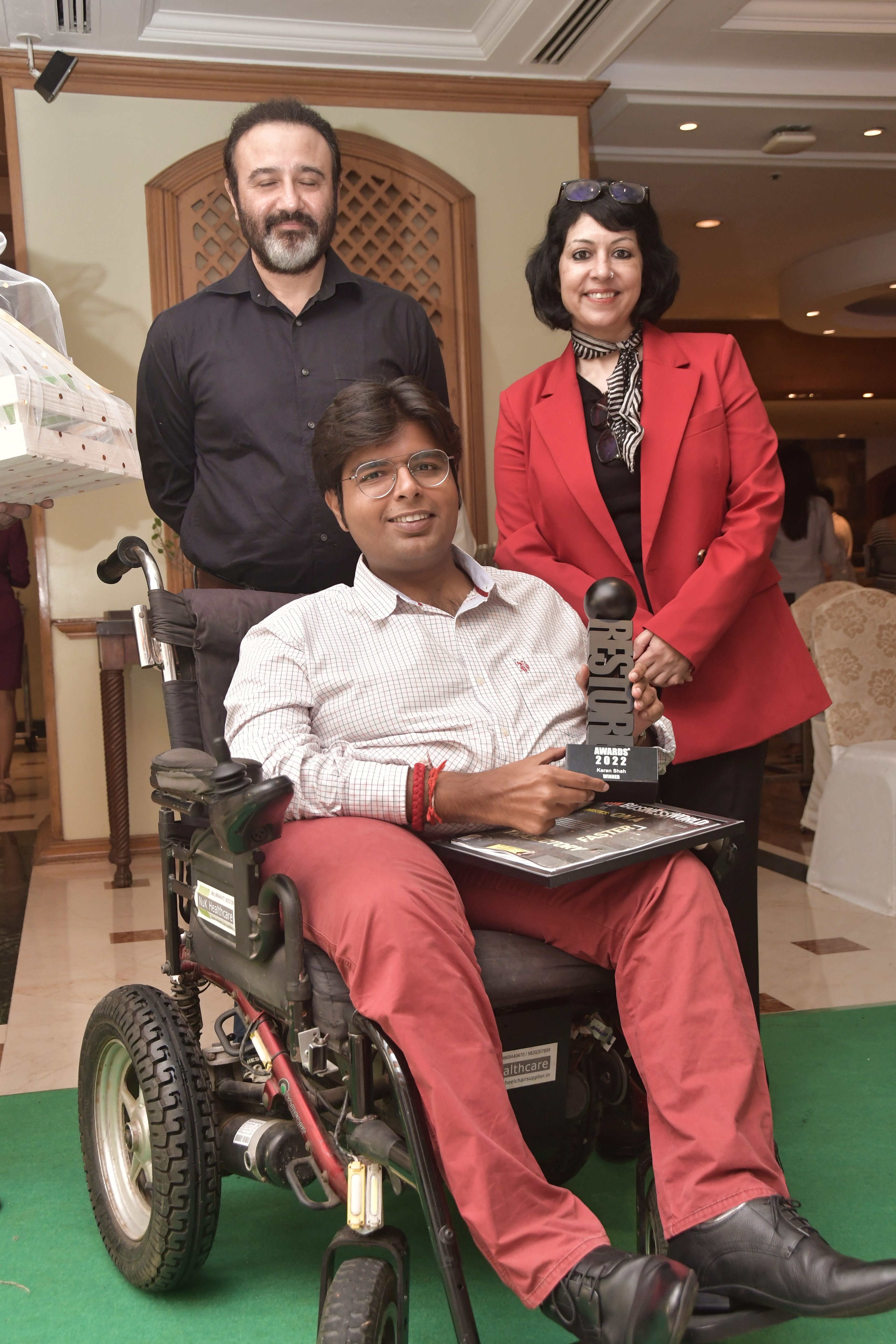 Jennifer Mallick, Javed Mallick striking a pose with Access Life Co-Founder Mr. Girish Nair